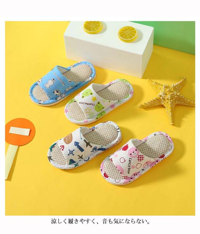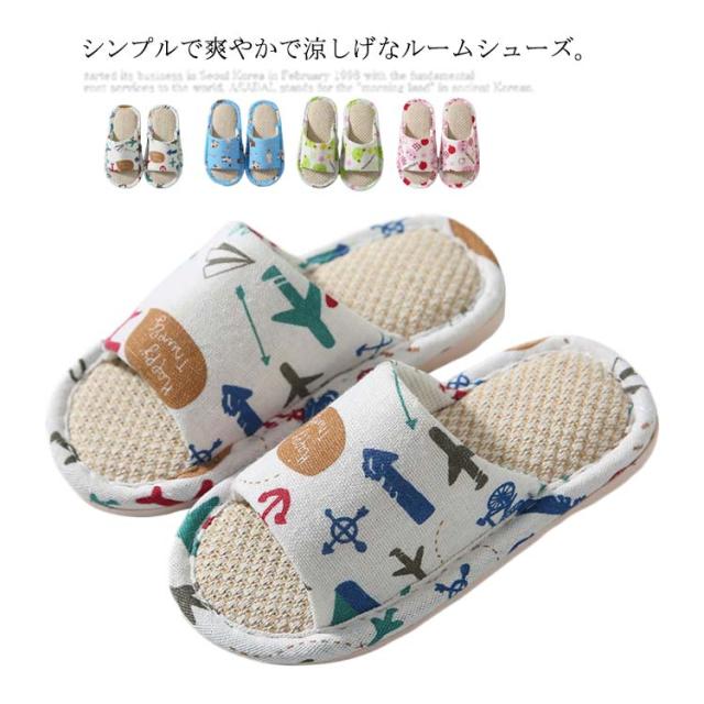【送料無料】スリッパ 子供 女の子 男の子 キッズルームシューズ 夏用 室内履き 可愛い サンダル 部屋履き 小学生 リネン こどもスリッパ 室内用 軽量 履きやすい おしゃれ 疲れにくい 滑り止め 蒸れない 軽量 ギフト