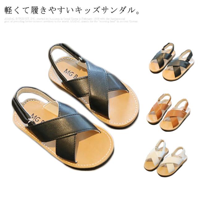 サンダル キッズ ジュニア 子供用 サンダル スポーツサンダル スニーカーサンダル ベビー キッズサンダル ウォーターシューズ フラット ぺたんこ クロスストラップ マジックテープ 軽量