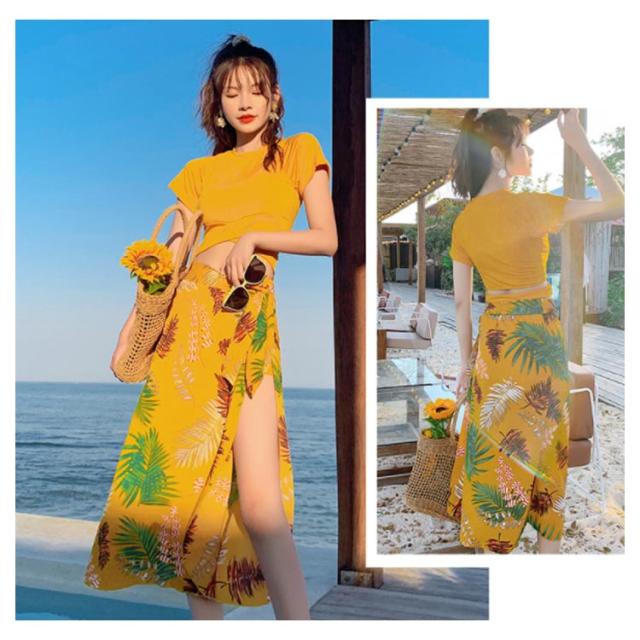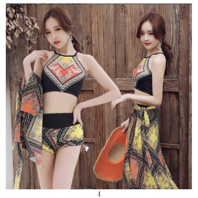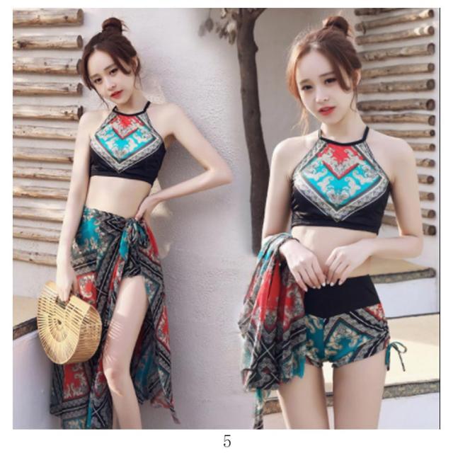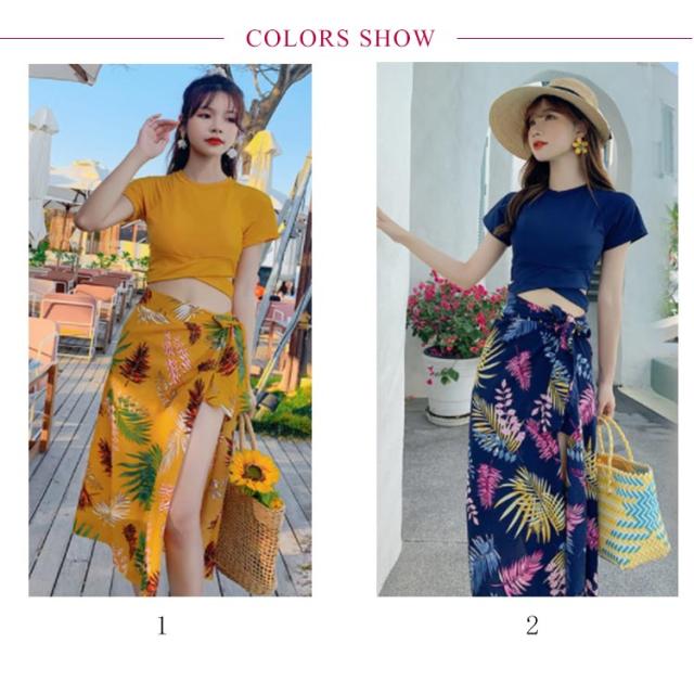 水着 レディース 体型カバー 水着3点セット セパレート ボタニカル柄巻きスカート【送料無料】キュロット 小胸バンドゥビギニ 水着 韓国風 スイムウェア 温泉 ママ水着 20代 30代 40代 ビーチ プール 海