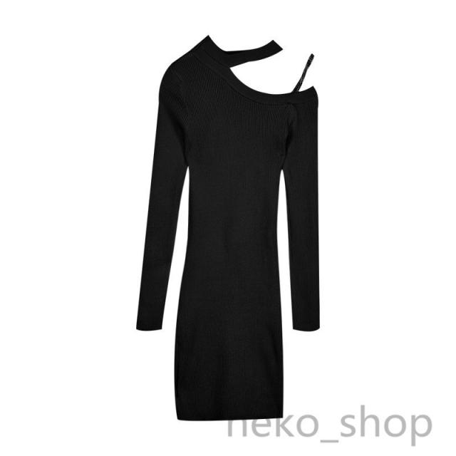 2色 ニットワンピース レディース 長袖 ホルターネック タイトワンピ ミニワンピース 肩出し キャバドレス スリム 着痩せ セクシー 結婚式 二次会 パーティー