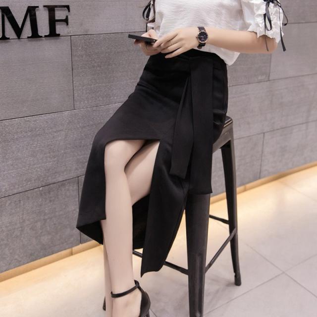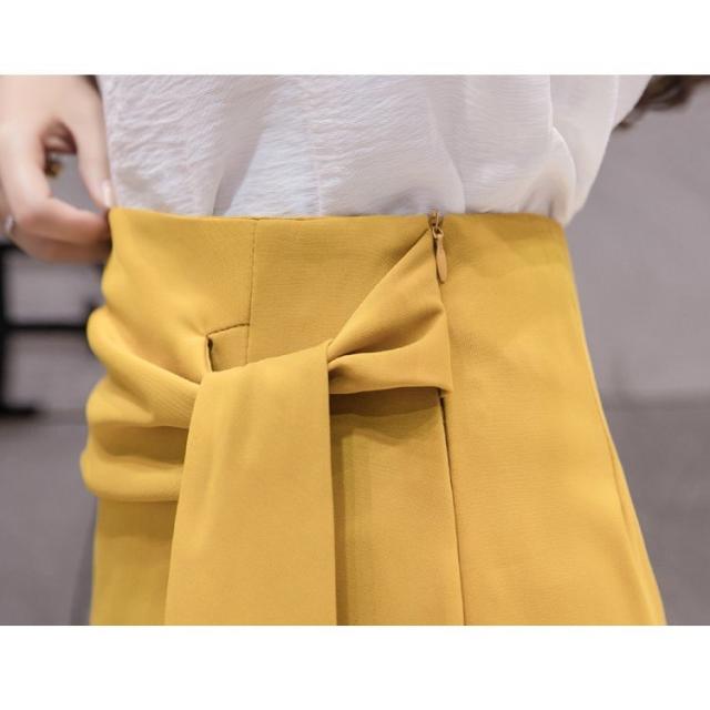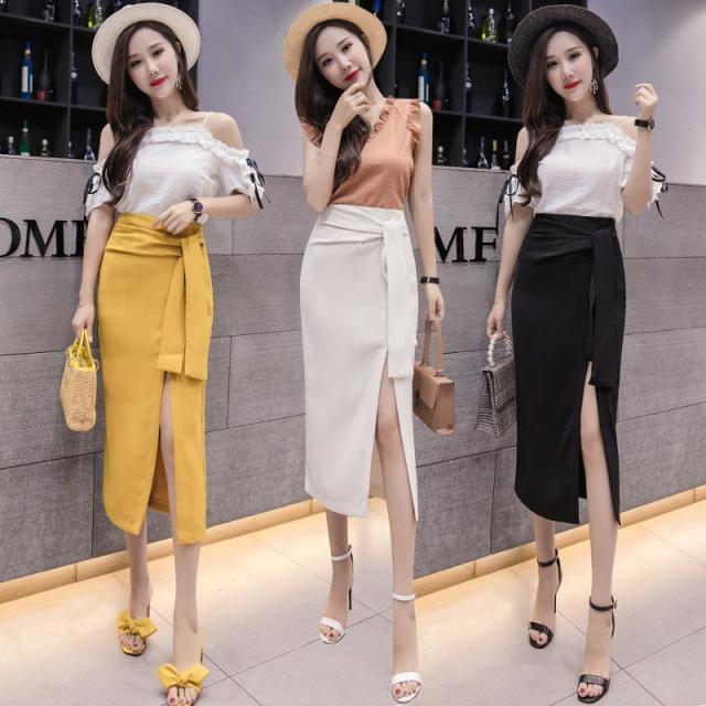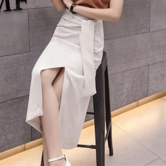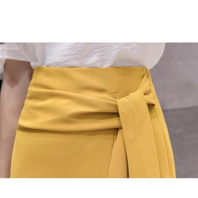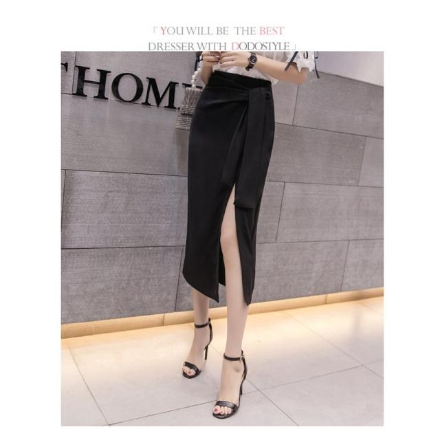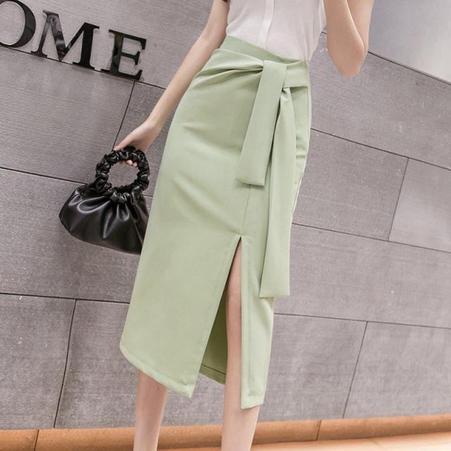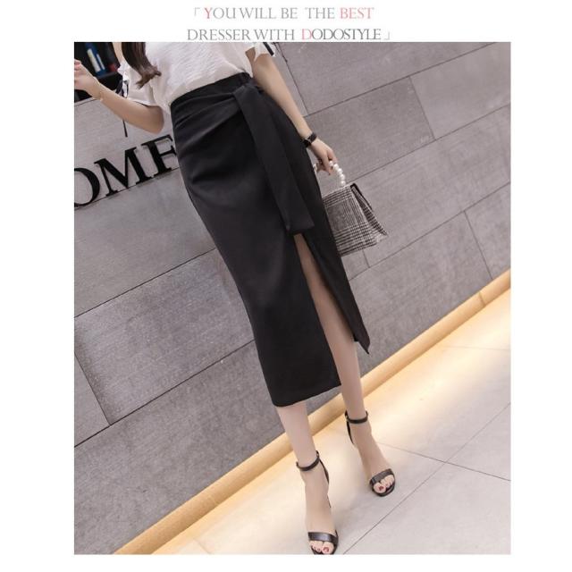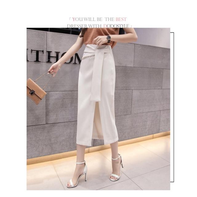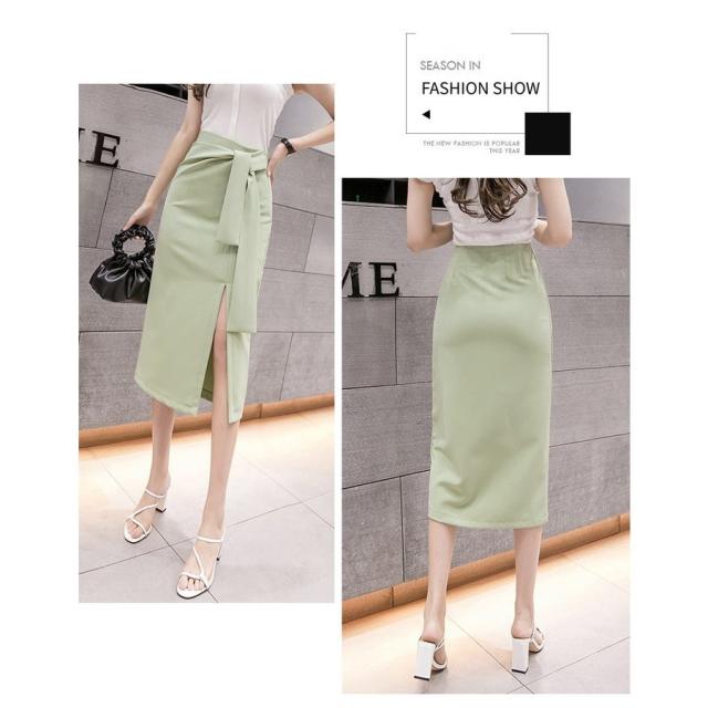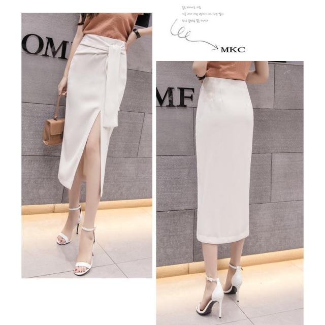 ミモレタイトスカート セクシースカート ビジネススカート ハイウエスト ヒップアップ 着痩せ ウエストリボン付き 無地 OL エレガント 側ファスナー XL 4色