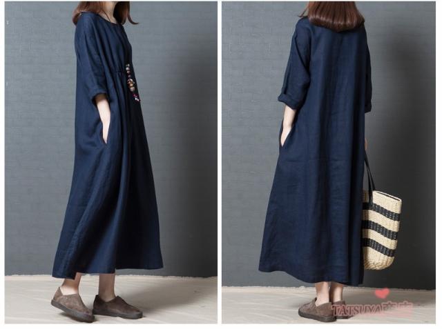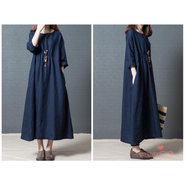 森ガール マキシ丈ワンピース 大きいサイズ ワンピース レディース 春秋 お呼ばれ ロング丈ワンピース ゆったり カジュアル 体型カバー 30代40代50代