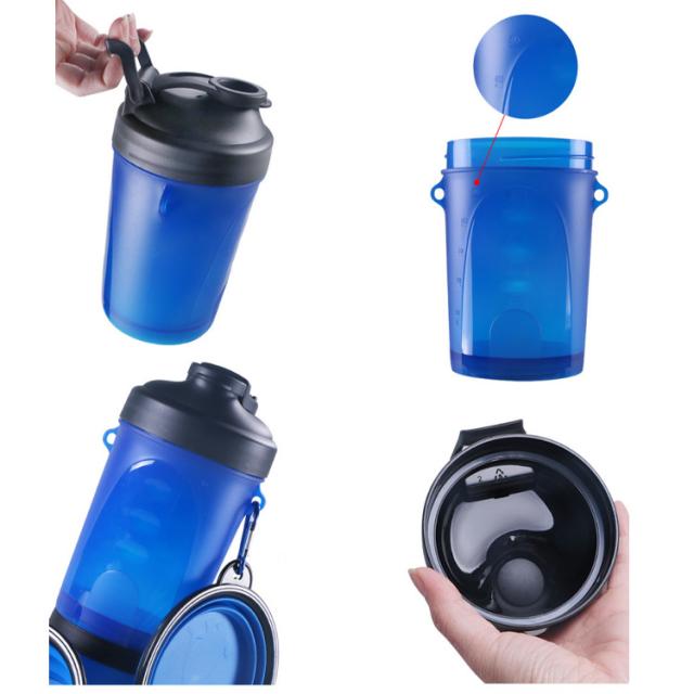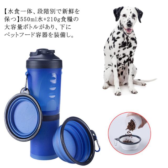 ペット給水器 給餌器 携帯水筒 猫 犬 水食一体 大容量 持ち運び ペットウォーターボトル 犬 水飲み器 水漏れ防止 水飲みカップ 携帯用水飲みボトル 旅行 お出かけ 犬猫用 散歩 おでかけ 二つ折り畳み食器付き