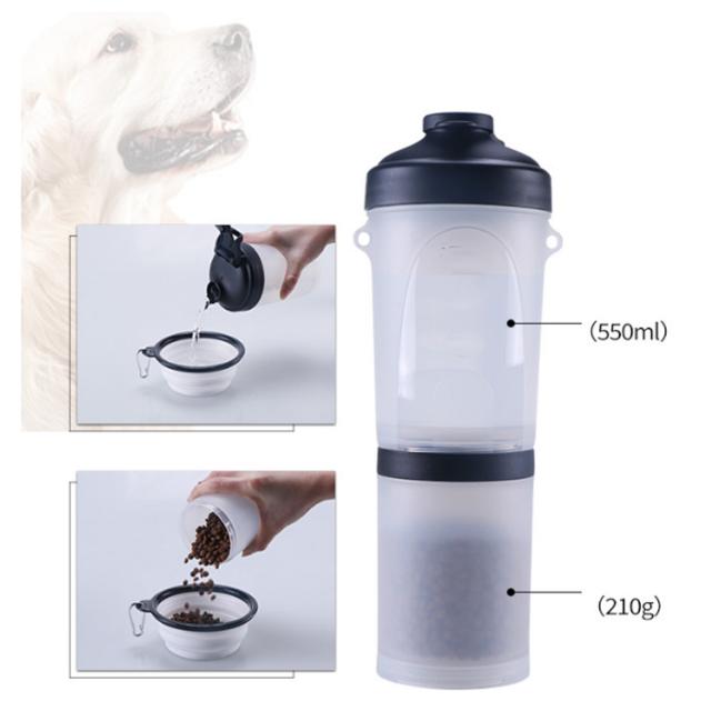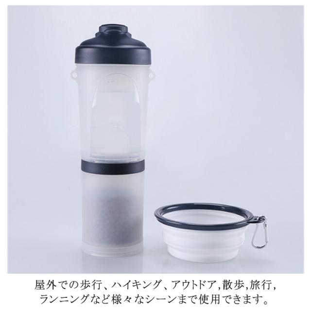 | 【水食一体、段階別で新鮮を保つ】550ml水+210g食糧の大容量ボトルがあり、下にペットフード容器を装備し。犬を散歩する時、ペットの喉が渇いて、道端の汚れた水を飲む心配がありません。いつでも犬に水分や餌を与えられます。 【飲み易さ・使い易さ】:ボウル付きのデザイン、各種類問わず全部快適に飲まられます。屋外での歩行、ハイキング、アウトドア,散歩,旅行,ランニングなど様々なシーンまで使用できます。簡単な運搬:コンパクトなウォーターボトルは、ペットと一緒に歩いたり旅行するのに最適です。 【簡単操作&洗濯やすい】:ボウル付きのため。汚れの残しや細菌繁殖の心配は要りません。 | |