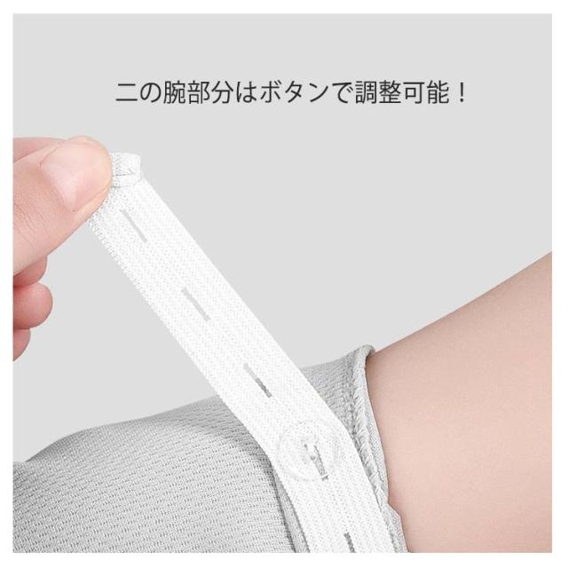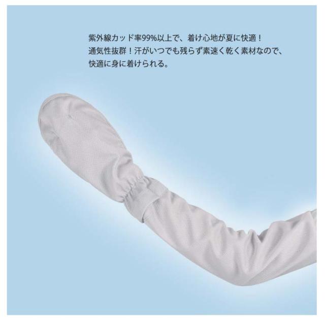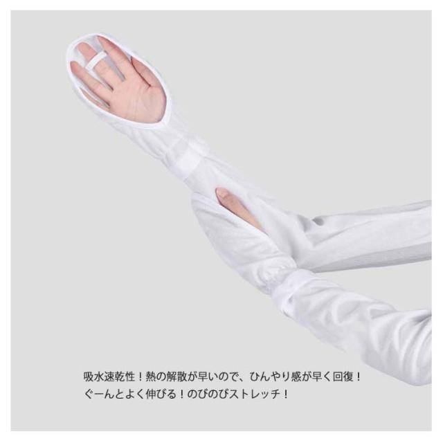 | 指掛けタイプアームカバー。二の腕から指先までしっかりカバー。 接触冷感で、水や汗で濡れると気化熱の作用により冷却効果!軽くて涼しく通気性のある肌に優しい柔らかな生地、心地よい肌触り! UPF50+!日差しの強い時期の紫外線から肌を守ることが期待できる日焼け対策として! 紫外線カッド率99%以上で、着け心地が夏に快適! 通気性抜群!汗がいつでも残らず素速く乾く素材なので、快適に身に着けられる。 吸水速乾性!熱の解散が早いので、ひんやり感が早く回復! ぐーんとよく伸びる!のびのびストレッチ! 二の腕部分はボタンで調整可能! アウトドアやスポーツにも最適! | |