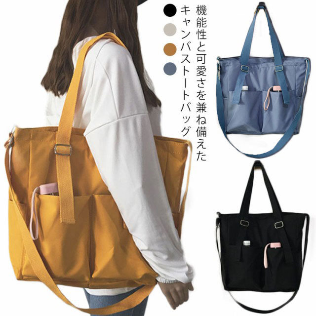 レディース メンズ 大容量 肩掛け 大きめ 手持ち 鞄 ショルダーバッグ A4 2WAY キャンバス ノートPC 通勤 トート 折り畳み傘 多収納 ランチバッグ マザーズバッグ 無地 オシャレ ビジネス バッグ 通学 大学生 かばん カバン 撥水 軽い 軽量 トートバッグ