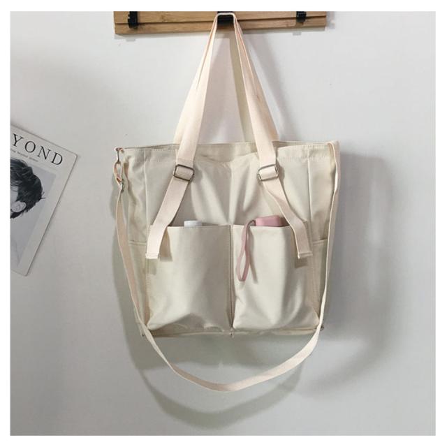 | 機能性と可愛さを兼ね備えたキャンバストートバッグ ダブルストラップのデザインなので、シーンに応じて手持ち・肩掛けで使えます。 A4ファイル、ノートPC、水筒、折りたたみ傘、財布など、荷物が多い方もバッチり。 生地表面に撥水加工が施されているので急な小雨にも安心です。(完全防水ではございません。) シンプルなデザインで豊富なバリエーション!サッと持ち出せるそんな気軽さが毎日使いたくなる魅力です! | |