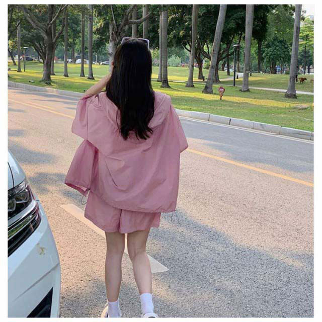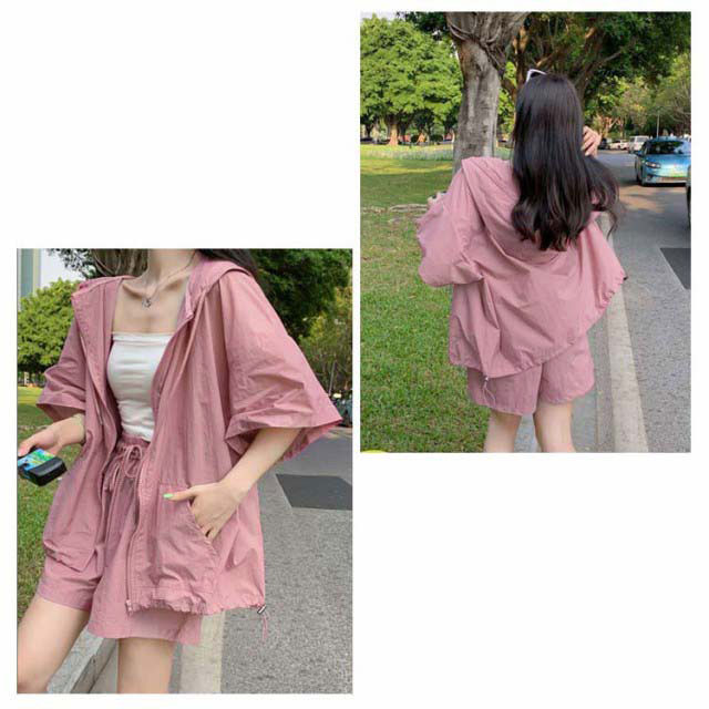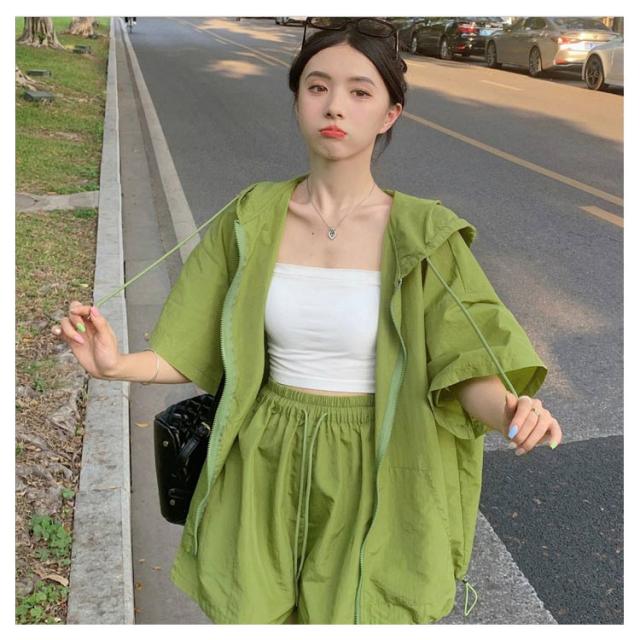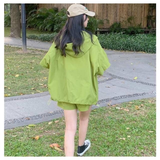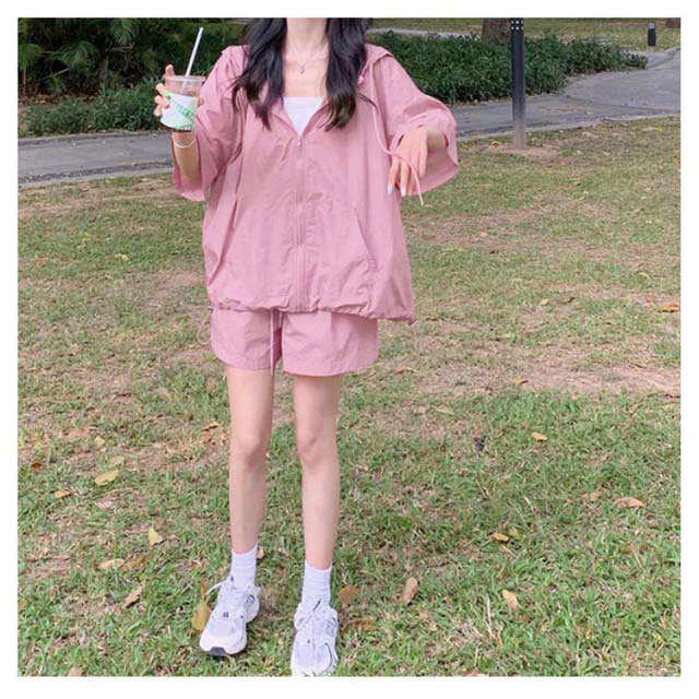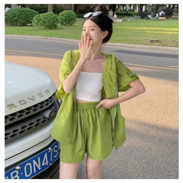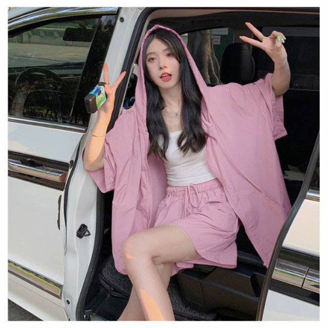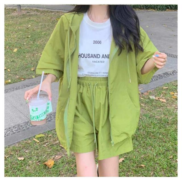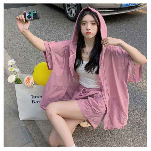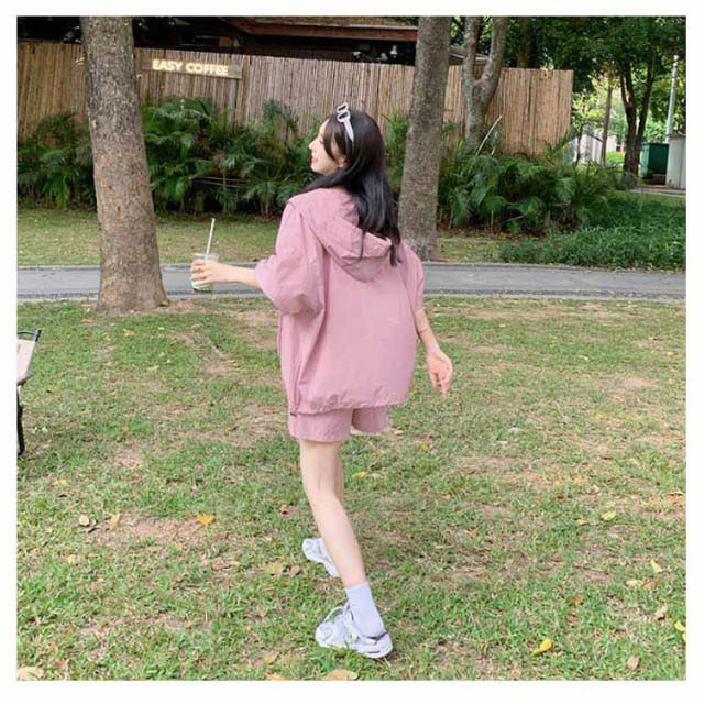 パーカー ハーフパンツ 半袖パーカー 上下セット 旅行 ジップアップ UVカットパーカー ゆったり 冷房対策 紫外線対策 カジュアル アウター ショートパンツ 薄手 セットアップ おしゃれ かわいい 無地 羽織 ビックシルエット 軽い 春 夏 お出かけ セット