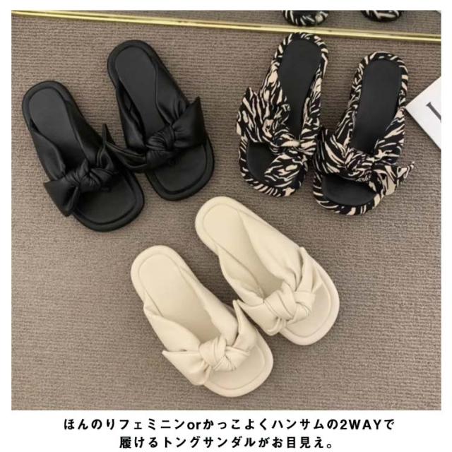 レディース キレイめ 履きやすい サンダル フラット ぺたんこ スリッパ 大人可愛い 春夏 痛くない リボン トングサンダル ビーチサンダル カジュアル お洒落 海辺 プール 靴 シューズ リゾート ローヒール