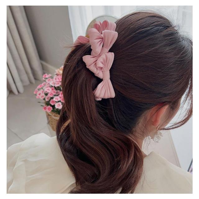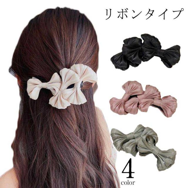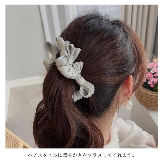 リボンバナナクリップ オフィス ヘアアクセ シンプル かわいい プレゼント レディース 大人っぽい ヘアアクセサリー おしゃれ リボン三つ