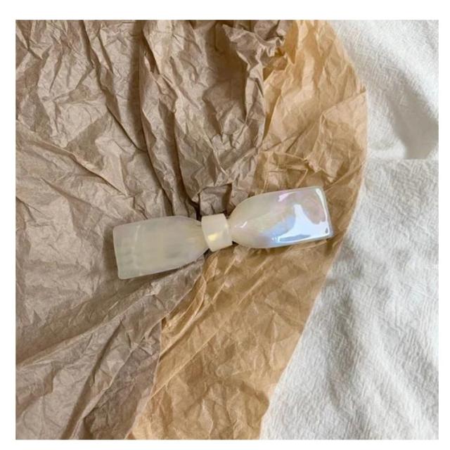 レディース べっ甲風 シンプルカラーリボンバレッタ アクリル ヘアアクセ ドット 大きめ 小さめ ヘアアクセサリー 大人っぽい かわいい プレゼント おしゃれ