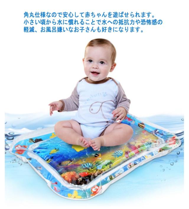 | 屋内でひんやり手軽に遊べるウォーターマット。 外輪を膨らませて内輪に水を入れるだけで、簡単にベビーウォーターマットをセットすることができます。 ウォータープレイマットはPVC素材で作られています。 おなかのウォーターマットは柔らかく快適で、漏れがなく、耐久性が高い作りです。 赤ちゃんは濡れることなく、水に浮かぶ海の世界のかわいいおもちゃで遊ぶことができます。 世界中で人気の腹ばい練習(タミータイム)が出来る知育玩具。 タミータイムのベビーウォータープレイマットは、赤ちゃんの運動能力と頭と肩の近くの筋力を向上させるのに役立ちます。 運動技能を鍛え、手と目の協調を発達させます。 66cm×50cmのちょうどいいサイズ感。 角丸仕様なので安心して赤ちゃんを遊ばせられます。 小さい頃から水に慣れることで水への抵抗力や恐怖感の軽減、お風呂嫌いなお子さんも好きになります。 使用後はマットを空にした後、折りたたんで収納できるので、場所を取りません。 ■使用方法■ 1.空気注入口から空気を入れます。 2.裏面の水注入口から水を入れます。(満水にはしないでください) | |