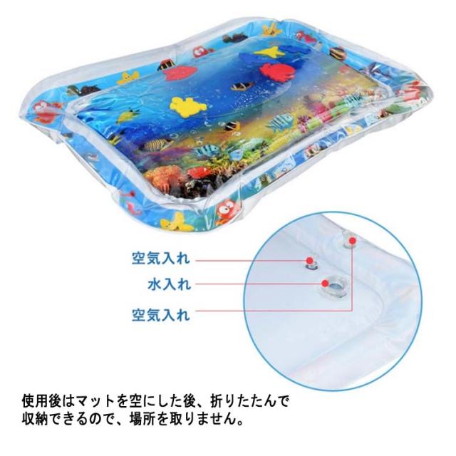空気注入口 感触刺激 ウォーター 赤ちゃん 知育玩具 水注入口 角丸仕様 視覚刺激 動物 魚柄 腹ばい練習 空気注入式 水入れ ウォータープレイマット