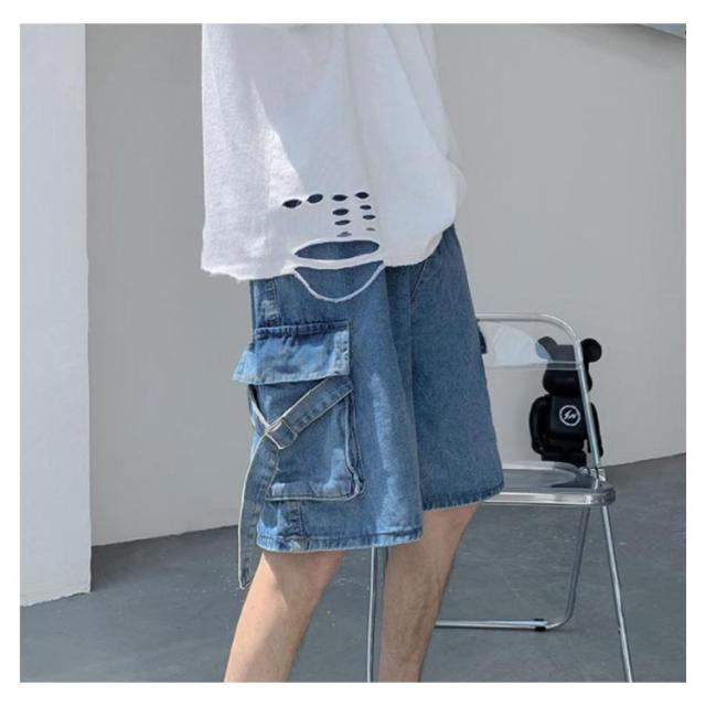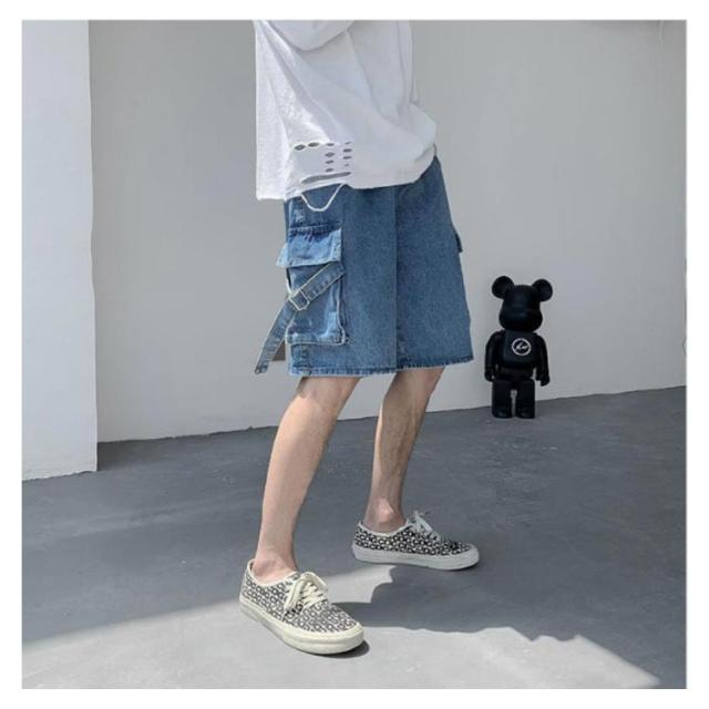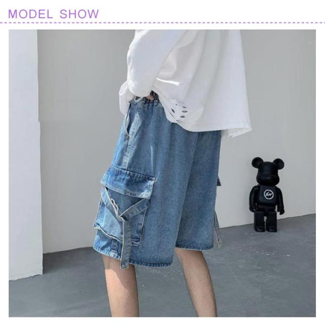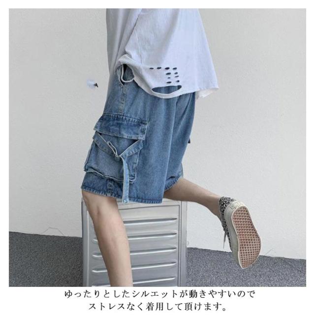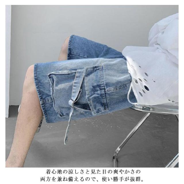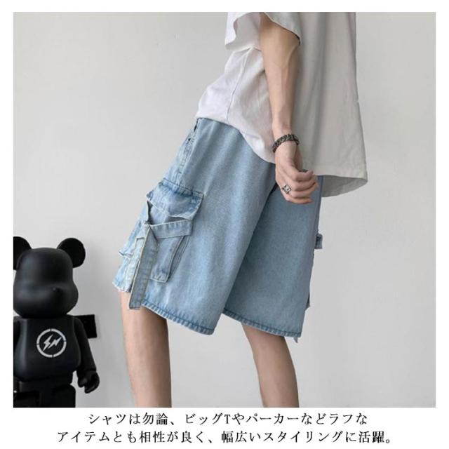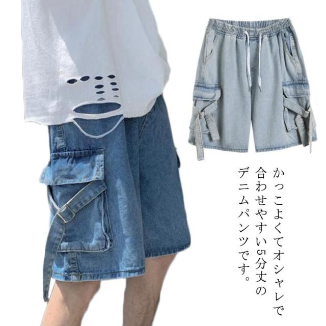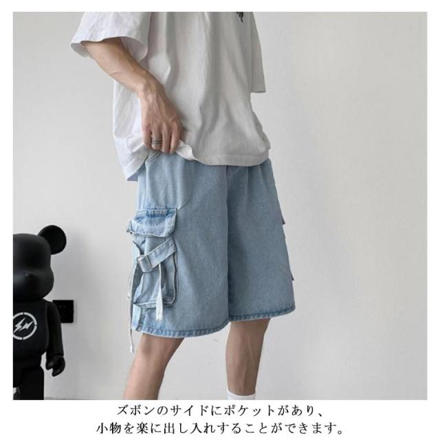 ゆったり ハーフパンツ メンズ デニムショーツ 5分丈 ポケット付き ショートパンツ 半ズボン 短パン カジュアル ルーズ感 大きいサイズ 薄手 夏物 ストリート ジーパン