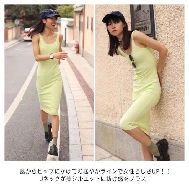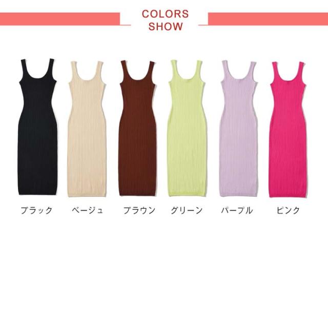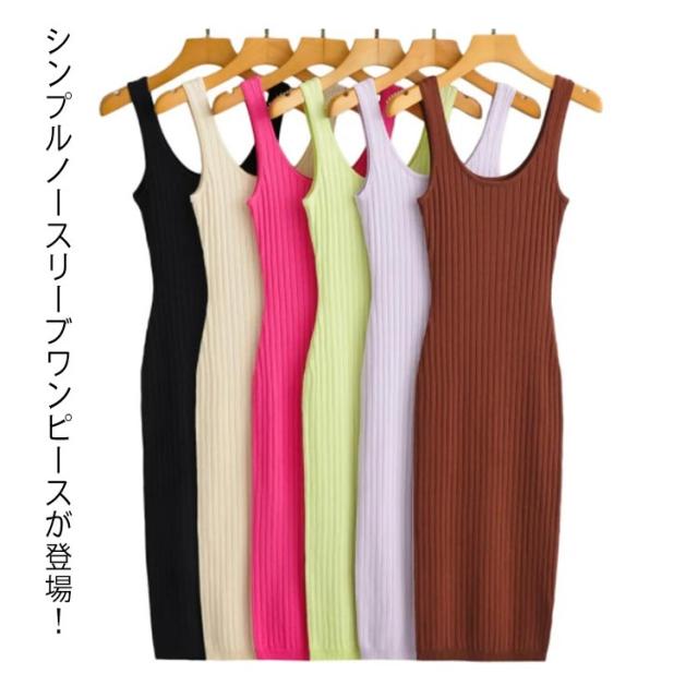 ロングワンピース ワンピース 送料無料 ニットワンピース シンプル キャミソールワンピース 無地 ノースリーブ キャミワンピ Uネック リブニット リブ編み ミモレワンピース ストレッチ お洒落 インナー カジュアル レディース
