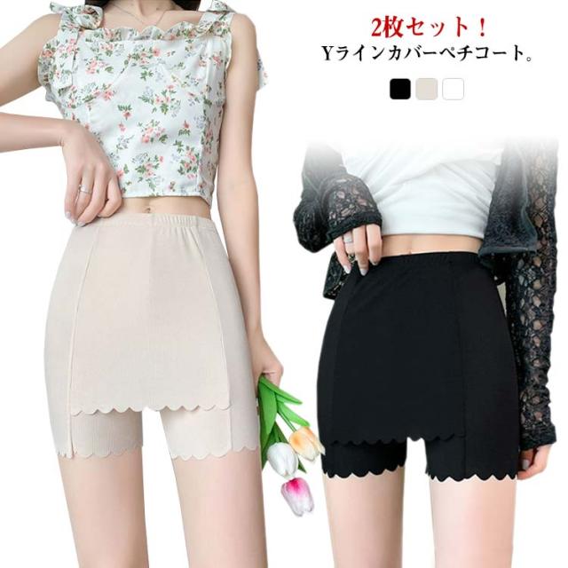 レディース 白 ペチパンツ 2枚セット!ペチコート 薄手 ショートパンツ Yラインカバー レディース 冷感 蒸れない 涼しい パンツ 接触冷感 無地 アイスシルク ペチパンツ 見せパン ペチスカート 透けない 大きいサイズ ストレッチ 伸縮性 夏 黒 インナー