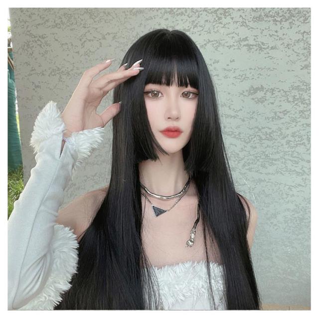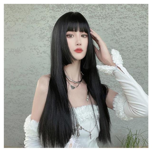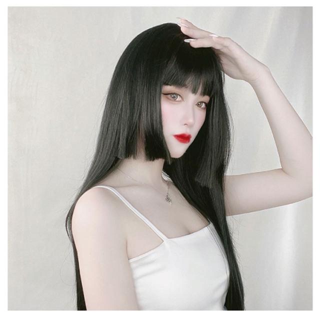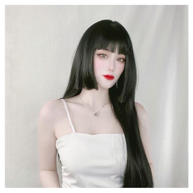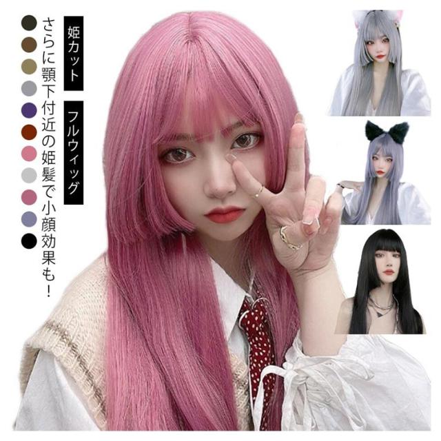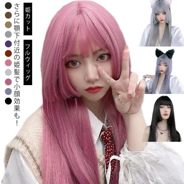 女性 ぱっつん前髪 姫髪 ウィッグ 小顔 かつら ロング フルウィッグ ハロウィン 自然 姫カット ナチュ 日常 耐熱 黒髪 うぃっぐ 原宿系 白髪隠し レディース コスプレ グラデーション レディーズ ブラウン ブラック 耐熱 女性 女性 黒髪 お洒落 ウィッグ