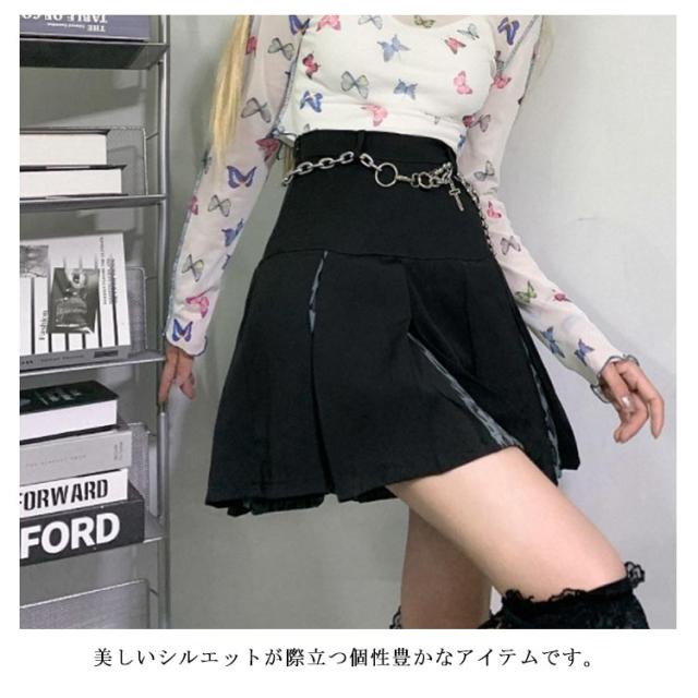 ダンス衣装 ミニスカート L ミニ おしゃれ かわいい 着?せ ショートスカート ストリート系 原宿系 S M レオパード切り替え!プリーツスカート