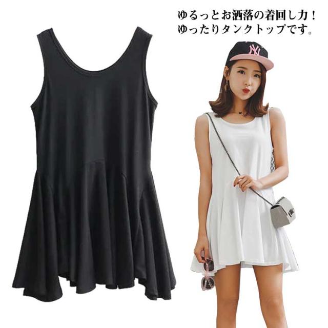 インナーワンピース タンクトップ 大きいサイズ ワンピース キャミワンピ インナーキャミ 重ね着 ノースリーブ レイヤード風 春 夏 秋 カジュアル お尻が隠れる アシンメトリー