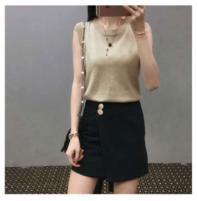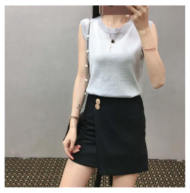ノースリーブ ラメ入り M ラウンドネック 2XL トップス サマーニット キャミソール 見せる下着 重ね着 大きいサイズ 着?せ ストレッチ インナー L XL タンクトップ