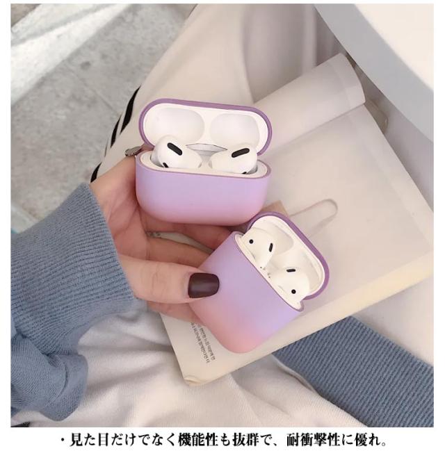 ハードケース グラデーション 韓国 可愛い ケース Airpods Airpods proケース 高級 カバー 高耐久性 エアーポッズカバー 装着 オシャレ Airpods1/2ケース