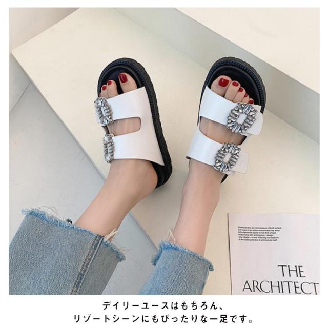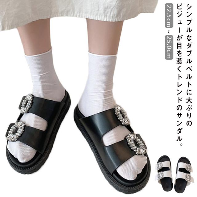 フラットサンダル ダブルベルト つっかけ ビジュー 痛くない サンダル ぺたんこ 通勤 歩きやすい ミュール 靴 走れる レディース ダブルベルトサンダル 軽い 柔らかい カジュアル きれいめ デイリー 厚底