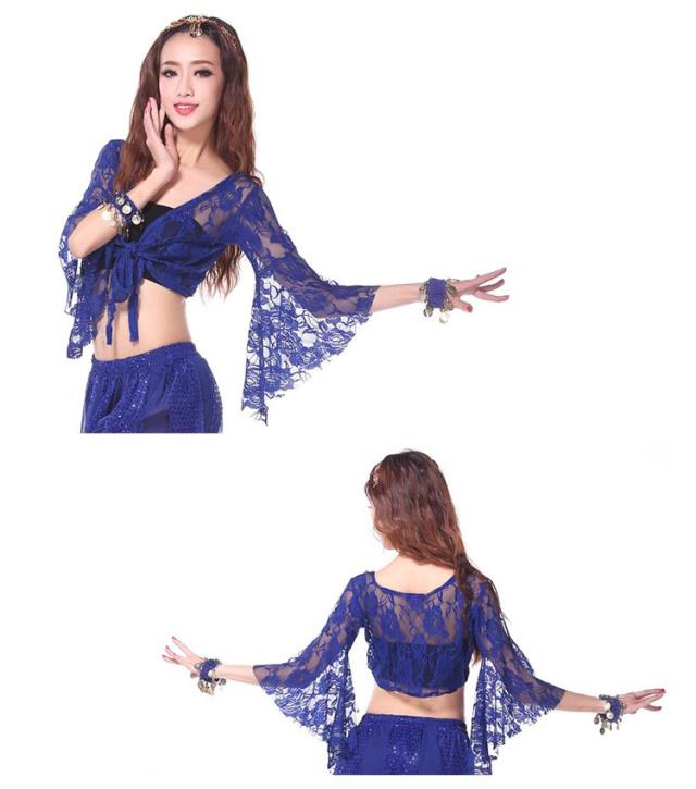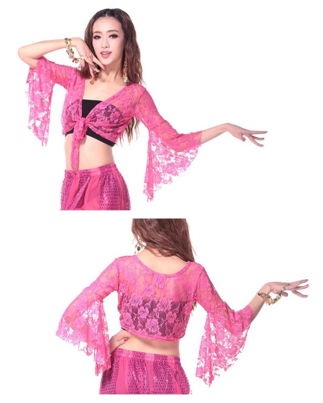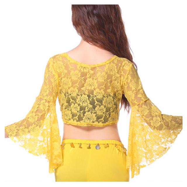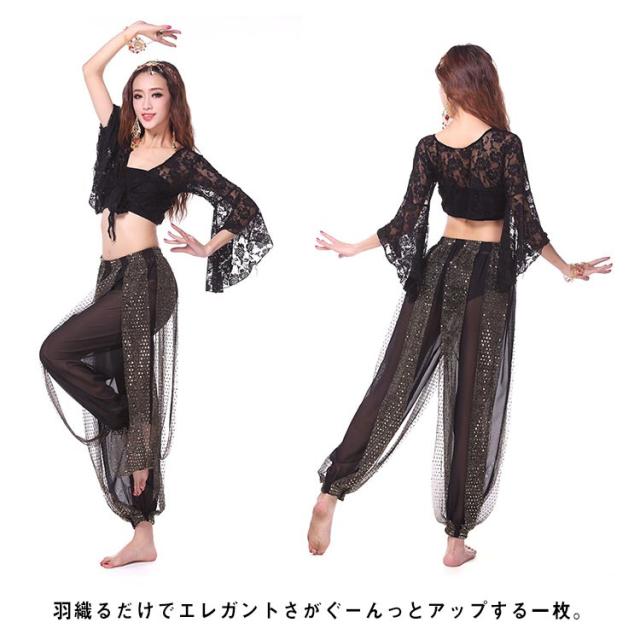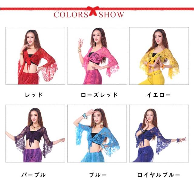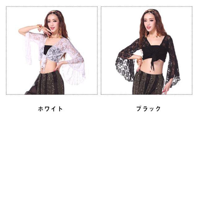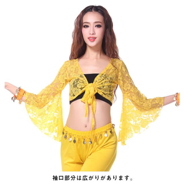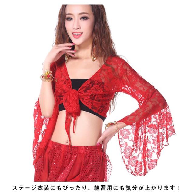 ベリーダンストップス 練習着 カーディガン ボレロ ベリーダンス衣装 フレア袖 総レース ダンスウェア シースルー レッスンウェア ラテンダンス フラメンコ チョリ