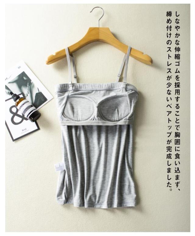 | カップ付きチューブトップタイプのレディーストップスです。 身生地はモーダルレーヨン素材で着心地柔らか♪ カップ下にもゴムがありズレにくく、透け感の心配もありません。※パット取り外し不可※ 長さ調節の出来るストラップは取り外し可能なので、首や肩回りをスッキリ見せることが出来ます! しなやかな伸縮ゴムを採用することで胸囲に食い込まず、締め付けのストレスが少ないベアトップが完成しました。 涼し気なトップスとしても肩回りが開いたワンピースやドレスのインナーとしてもOK、ダンスやヨガ・エクササイズのウェアとしもお薦めです! | |