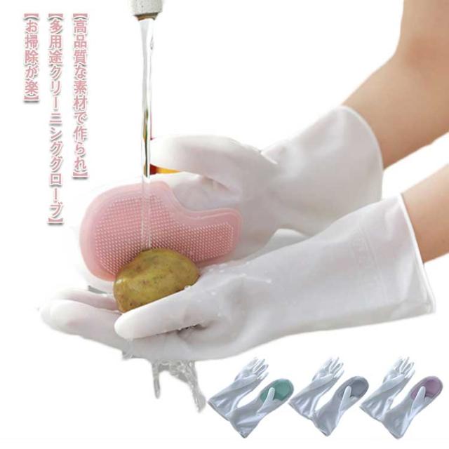 手袋 お掃除手袋 滑り止め 多機能 シリコンブラシ手袋 収納便利 キッチン雑貨 デザイン お風呂掃除ブラシ ペットシャンプー 洗車ブラシ 送料無料 半透明 青 ピンク 紫