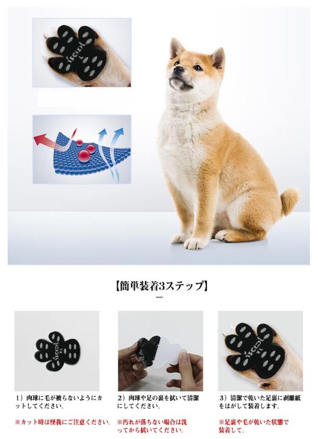 | 貼るだけで愛犬の足の裏、肉球を保護できるパッドです タイプで、足裏にペタッと貼るだけでOK。 伸縮性も高く、きれいに肉球を覆うことができます 足裏がになっているので取り付けも簡単です 滑りやすいフローリングでも肉球を覆って保護しながらシリコン製の滑り止めでスイスイと歩けます。 【簡単装着3ステップ】 1)肉球に毛が被らないようにカットしてください。※カット時は怪我にご注意ください。 2)肉球や足の裏を拭いて清潔にしてください。※汚れが落ちない場合は洗ってから拭いてください。 3)清潔で乾いた足裏に剥離紙をはがして装着します。※足裏や毛が乾いた状態で装着して | |