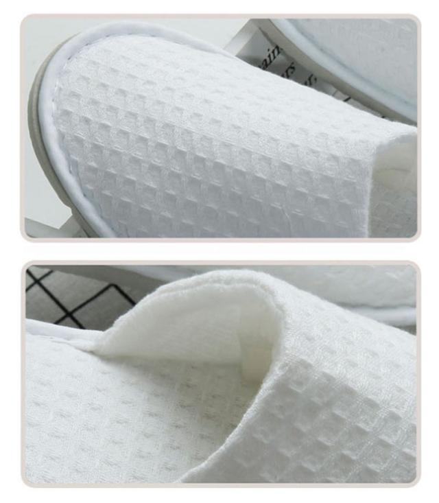 | 高級感のあるワッフルタイプの使い捨てスリッパ。 肌ざわりのいいやわらかなるワッフル生地が足をやさしく包みこんでくれるので、リラックスタイムにぴったりです。 底面にはEVA素材を使用しており、すべりやすさに配慮されています。 つま先が前開きタイプと前詰まりタイプの2種類から選べます。 | |