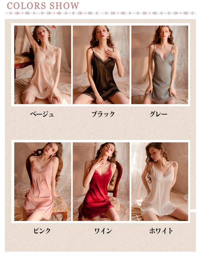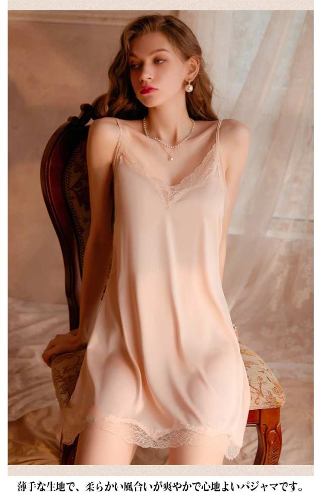 冷感 レディース Vネック キャミソール 可愛い ネグリジェ サテン ナイトウエア 春夏 サテン ルームウェア 薄手 涼しい ワンピース 寝巻き レース ランジェリー キャミワンピース 上品 肌触り良い 部屋着 セクシー 彼女 パジャマ