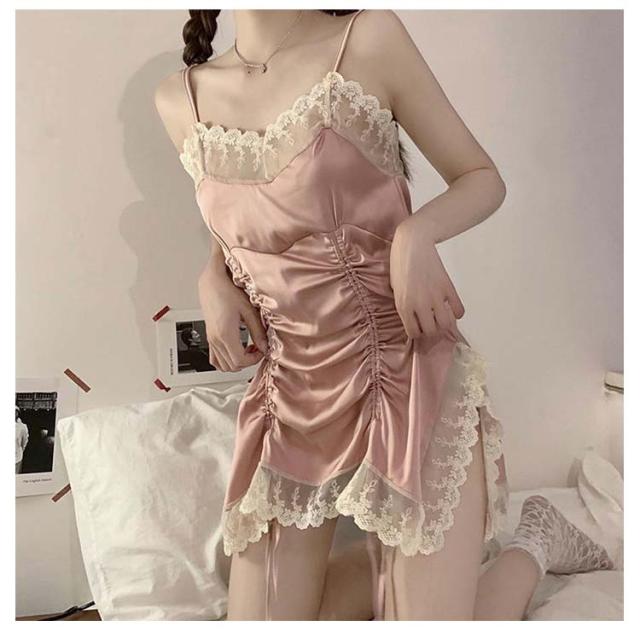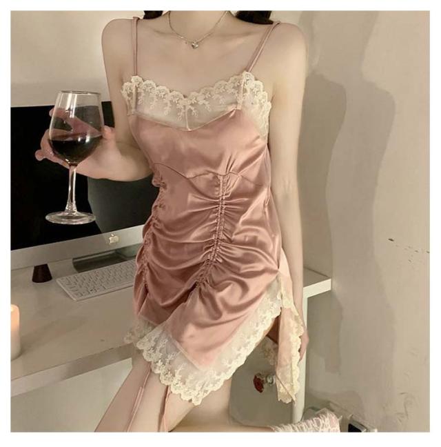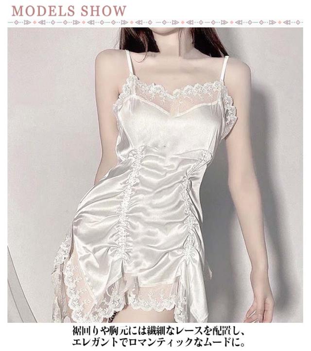 パジャマ ネグリジェ 高級感 レディース ワンピース キャミソール 姫系 ナイトウエア キャミワンピ ルームウェア ルームウェア 春夏 レース 寝巻き 可愛い ランジェリー 部屋着 上品 スリット セクシー 女性 婦人 彼女 サテン