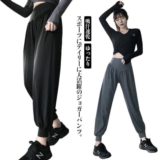 マラソン ゆったり レディース ジム スポーツウェア ランニング ジョギング ロングパンツ 吸汗速乾 ジョガーパンツ ヨガパンツ ダンスウェア ルームウェア ウォーキング フィットネス ボトムス ハイウエスト