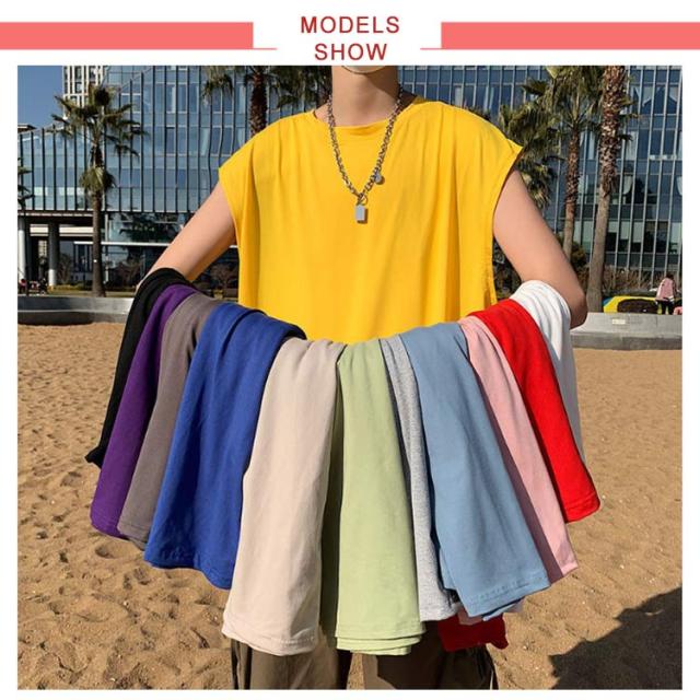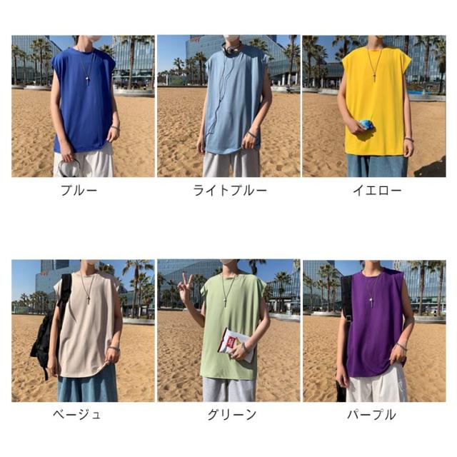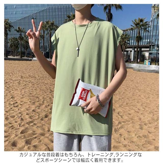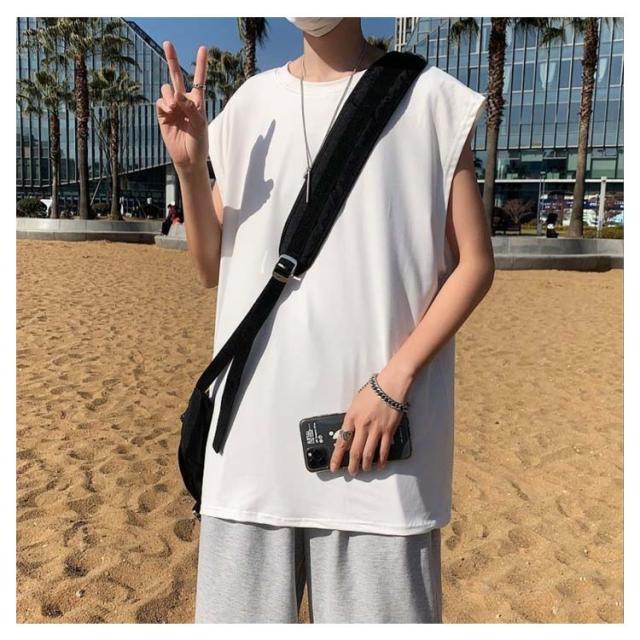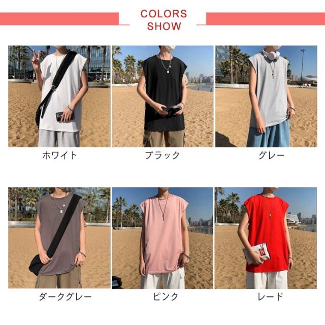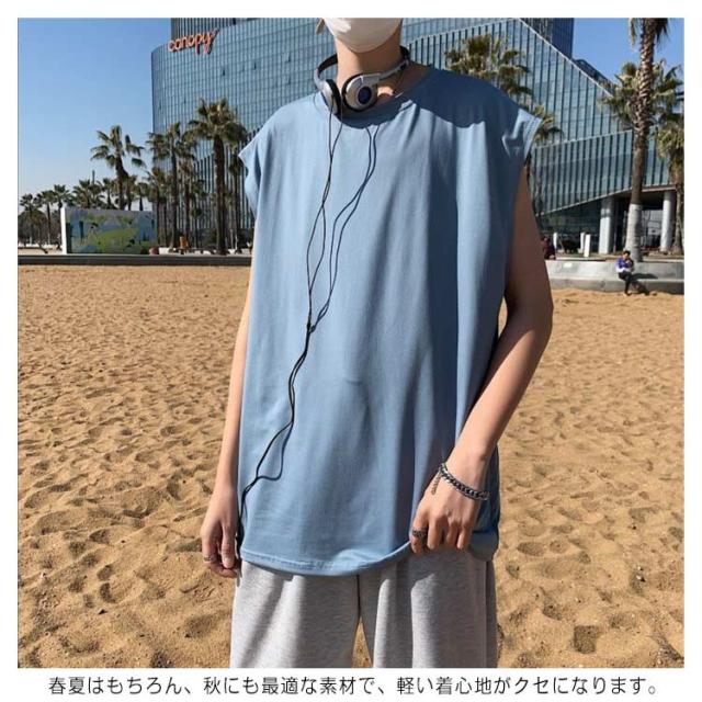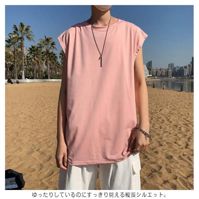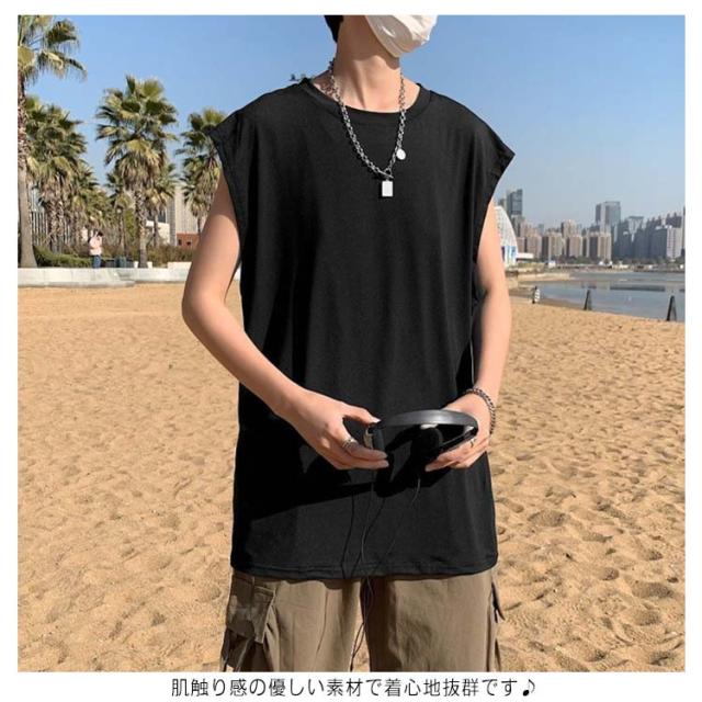 ロング丈 メンズ カットソー ルーズ タンクトップ ベスト ノースリーブ ゆったり ダンス服 トップス クルーネック インナーTシャツ 肌着 袖なし タンクトップ ビッグシルエット オーバーサイズ 無地 スポーツ カジュアル ストリート Tシャツ