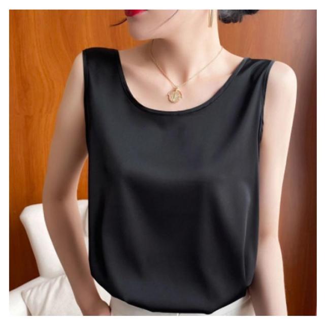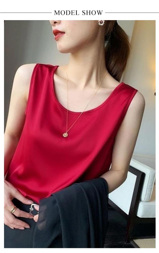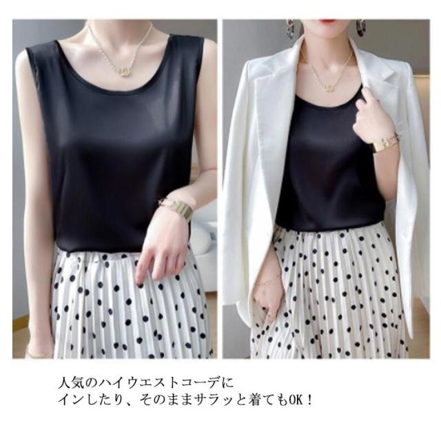 ノースリーブ シルク Uネック 全10色 2XL レディース トップス サテン M ストレッチ インナー フォーマル 光沢 絹 上品 シンプル 春夏 エレガント S シルクインナー L XL タンクトップ