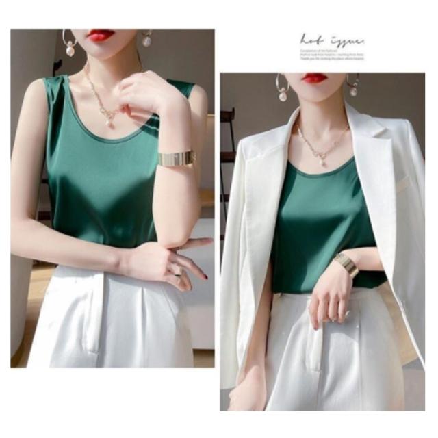 | サラッと快適なシルク生地のノースリーブトップス。 程度よく開いたUネックで胸元のチラ見え防止にも重宝します! ふわっと落ち感のあるドレープラインが美しい1枚です。 人気のハイウエストコーデにインしたり、そのままサラッと着てもOK! 全9色、オフィスシーンからデートコーデまで幅広く使えるアイテムです。 | |