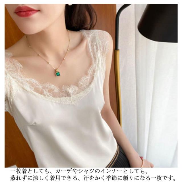インナーキャミソール レディース 2XL おしゃれ シルク シルクタッチ ストレッチ サテンスリップ スーツインナー キャミソール シルクキャミ かわいい S M L XL レース付き