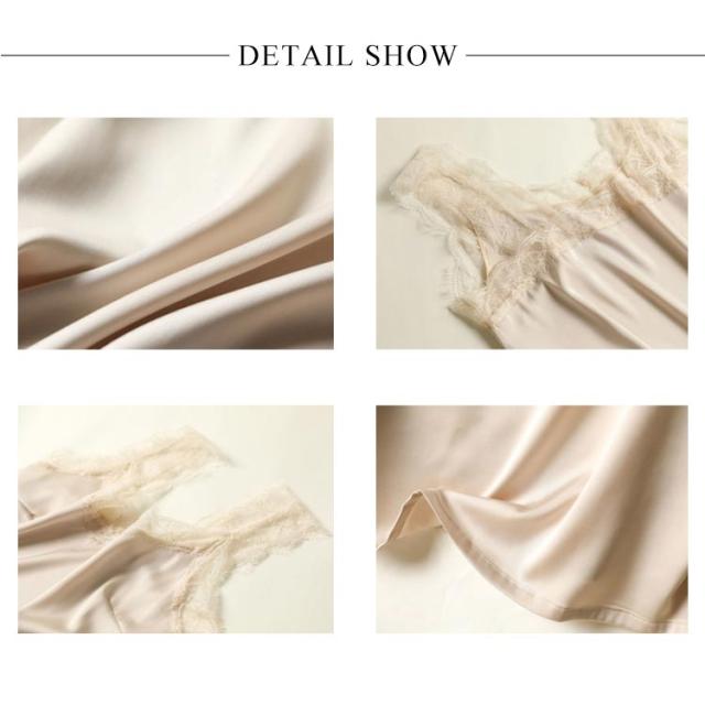 | サラッと快適なシルク生地のノースリーブトップス。 ストラップと胸元のレース飾りはかわいいポイント! ふわっと落ち感のあるドレープラインが美しい1枚です。 一枚着としても、カーデやシャツのインナーとしても、蒸れずに涼しく着用できる、汗をかく季節に頼りになる一枚です。 ルームウェアにもおすすめ。 全4色、スーツインナーとしても重ね着スタイルにも、魅力を発揮してくれる、オシャレなレイヤードスタイルが即完成しちゃう優秀アイテムです。 | |