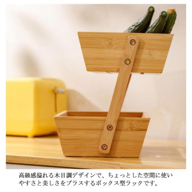 | 天然木を使用した収納ラック2段。 ごちゃつきがちな場所や、収納が足りない部分に1つ置くだけで、空間を上手に活用しながらスッキリ収納することができます。 キズや汚れに強く、耐久性に優れた木素材です。 キッチンやリビングなど、調味料や雑貨などを置くのに十分な耐荷重を持たせました。 高級感溢れる木目調デザインで、ちょっとした空間に使いやすさと美しさをプラスするボックス型ラックです。 | |