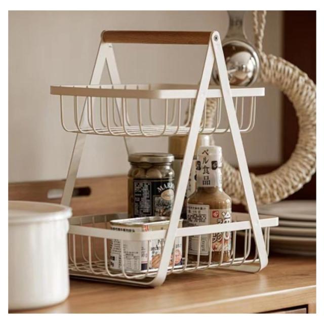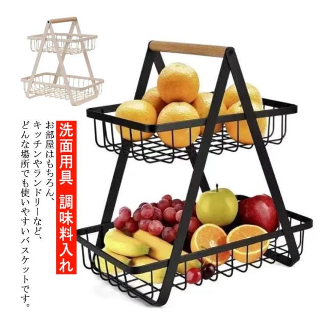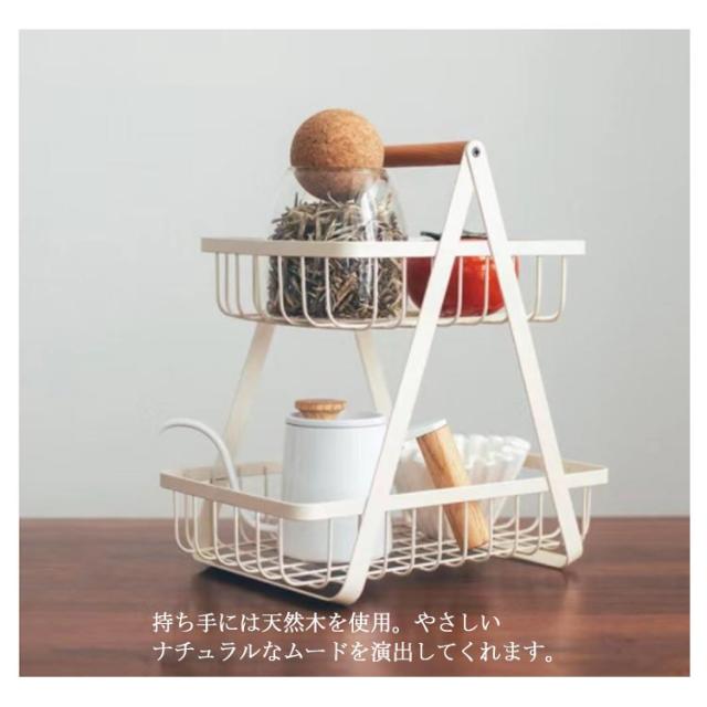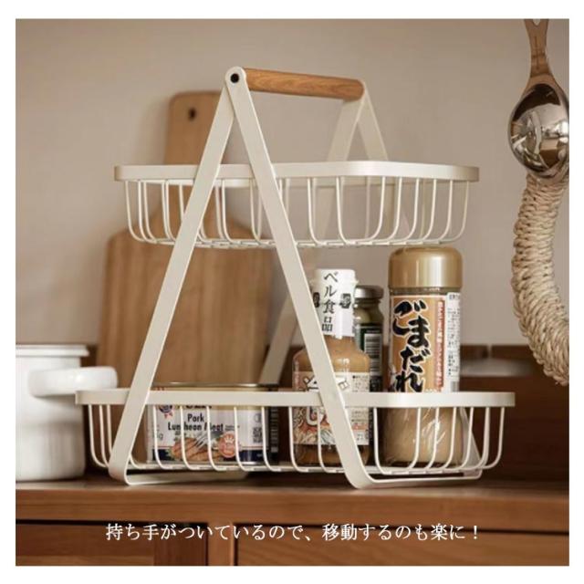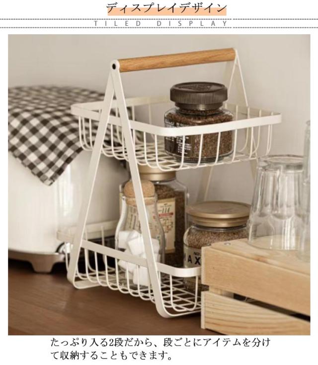 バスケット カゴ キッチンカゴ 大容量 洗濯かご かご 収納 洗面用具 2段 調味料入れ 収納ラック 小物入れ フルーツバスケット ランドリーバスケット キッチンバスケット ワイヤーラック ワイヤーバスケット 台所用品 持ち手付き おしゃれ 北欧 ウッド 食器乾燥