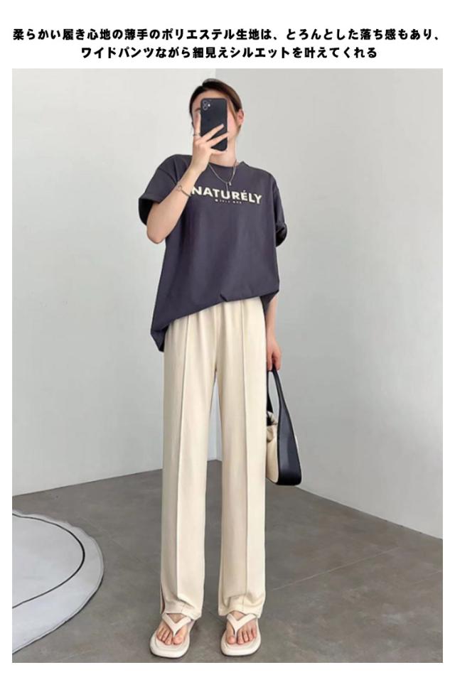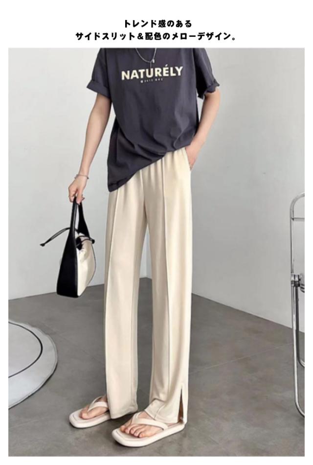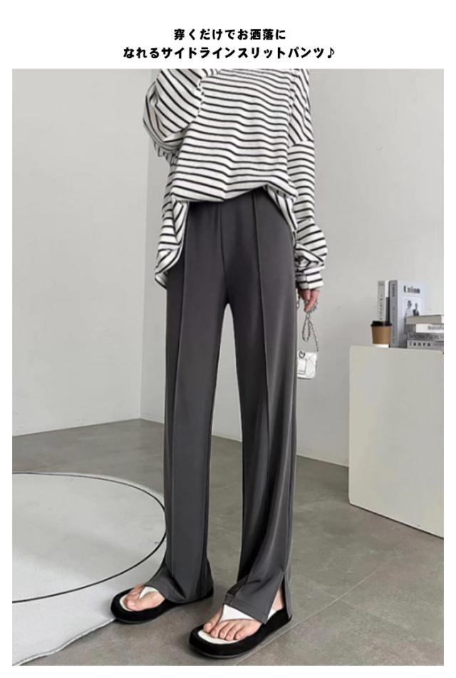 オシャレ ワイドパンツ 送料無料 スリット スリットパンツ ボトムス レディース 美脚 スラックス サイドライン 体型カバー 韓国ファッション 大人気 通勤 ロングパンツ