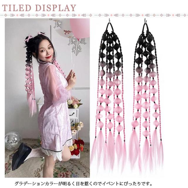 | ヘアゴムタイプで簡単に髪に付けられます。 グラデーションカラーが明るく目を惹くのでイベントにぴったりです。 女の子にも大人にも向いてる。5色からお選びいただけます。 ヘアゴムなのでポニーテールやツインテールにそのまま付ける事もできます! 2個の組み合わせで、よりキレイで魅力溢れるブレイズヘアになります。 | |