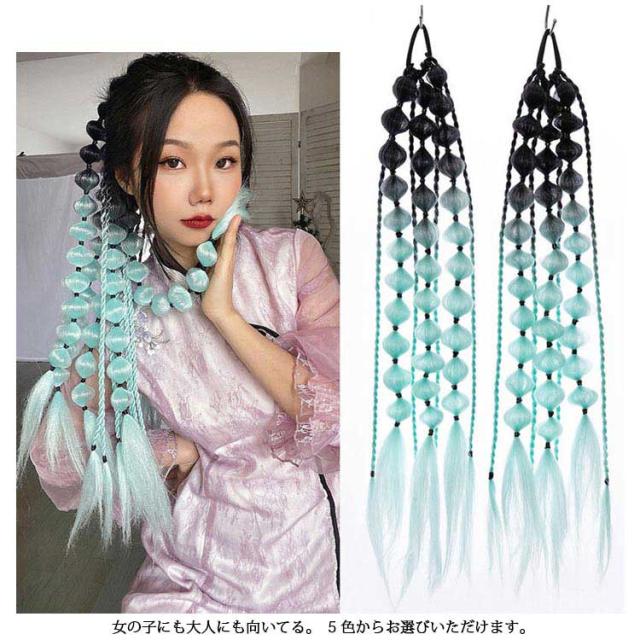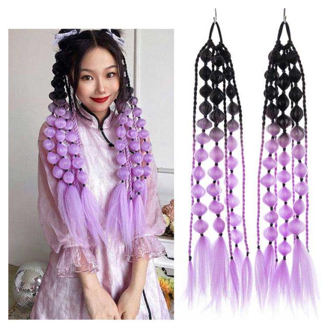 ドレッド 2個セット 毛束 ダンス エクステンション 髪型 編み込み グラデーション ヒップホップ ポニーテール 14本入り ウィッグ へアゴム レディース ボリューム ブレイズ 女の子 キッズ ファッション カラフル カラフル