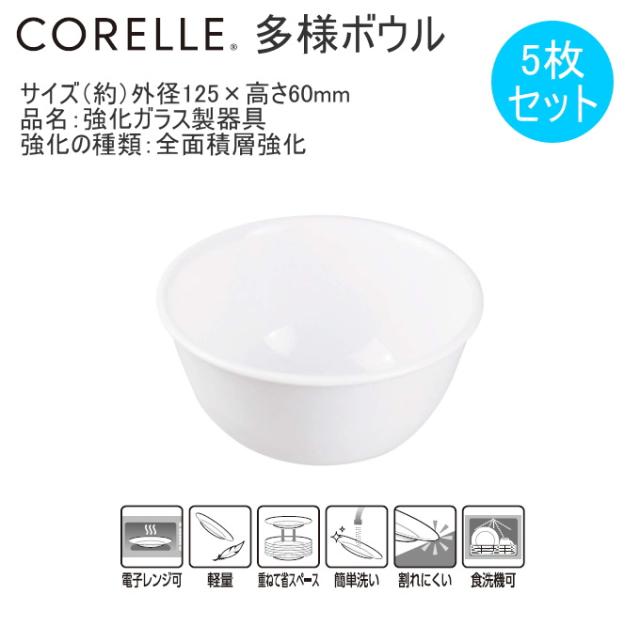 コレール ウインターフロストホワイト 多様ボウル 5個セット 皿 深型 ボウル お椀 食器 丸型 ホワイト 軽量 三層構造ガラス CORELLE