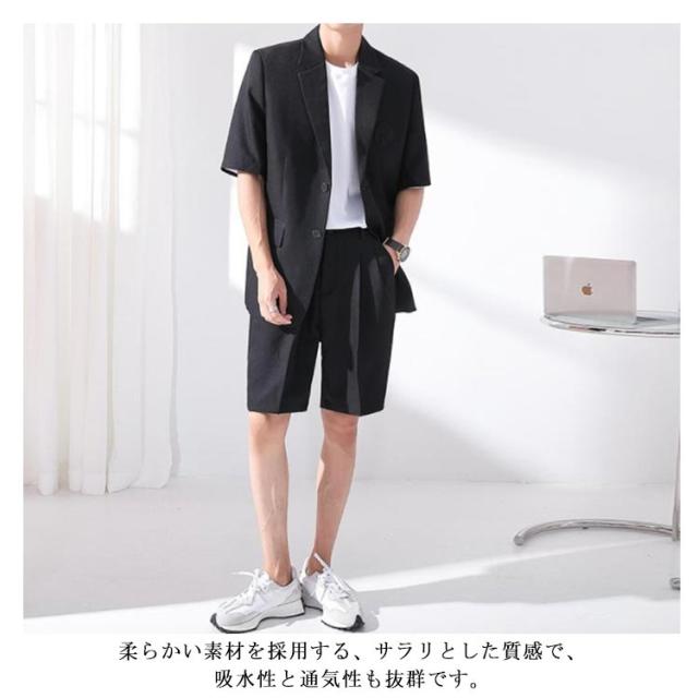 サマージャケット メンズ セットアップ 半袖 サマースーツ 春 夏 おしゃれ テーラードジャケット ハーフパンツ シンプル 韓国ファション
