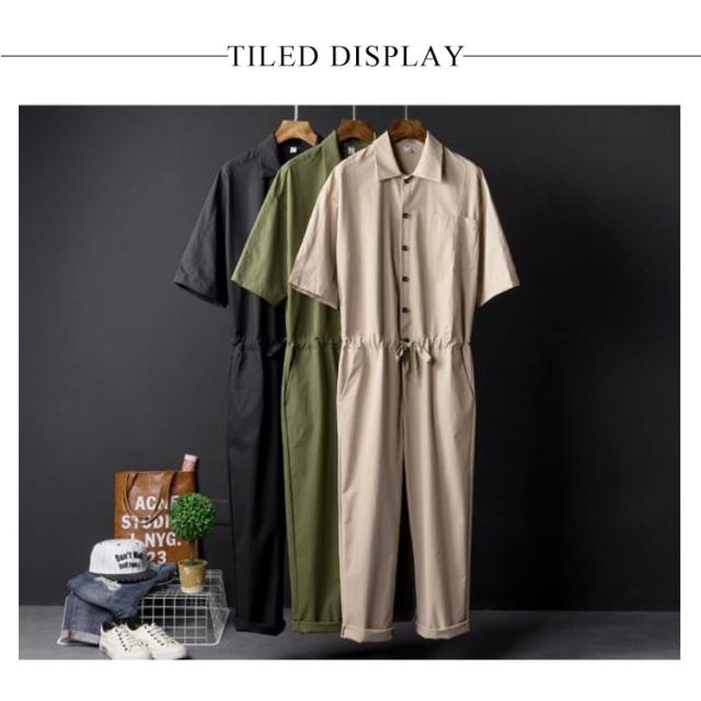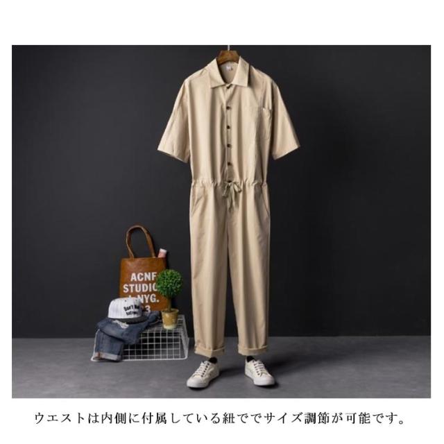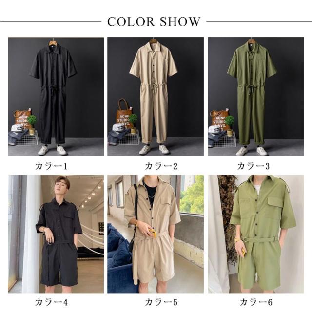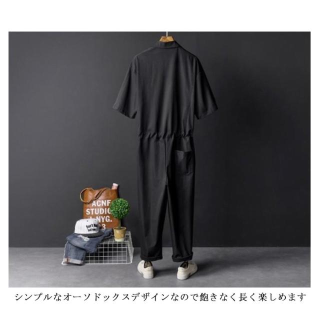 夏 カバーオール オーバーオール メンズ ワークウェア ブランド 作業服 ゆったり セットアップ 2XL 半袖 春 大きいサイズ 大きめ ストリート b系 ステージ衣装 HIPHOP S M L XL 選べるズボン丈