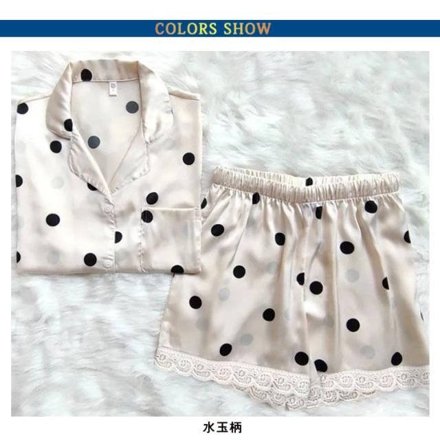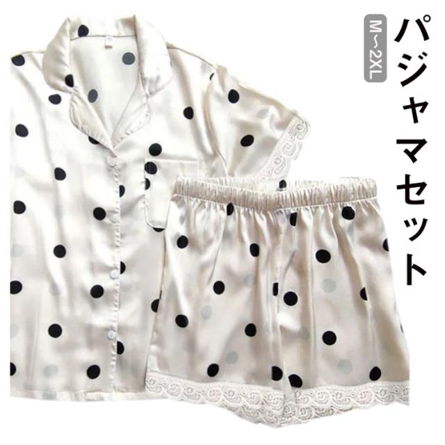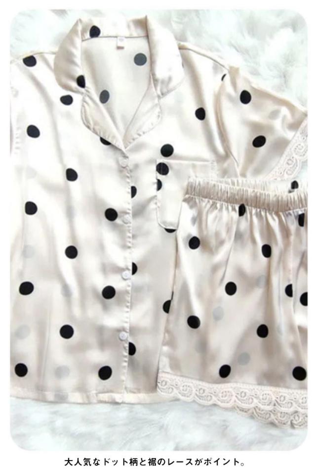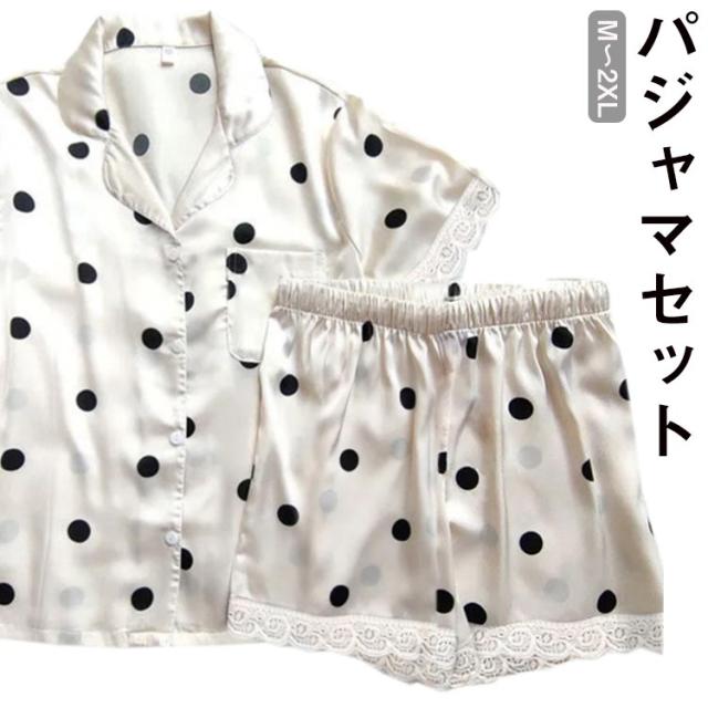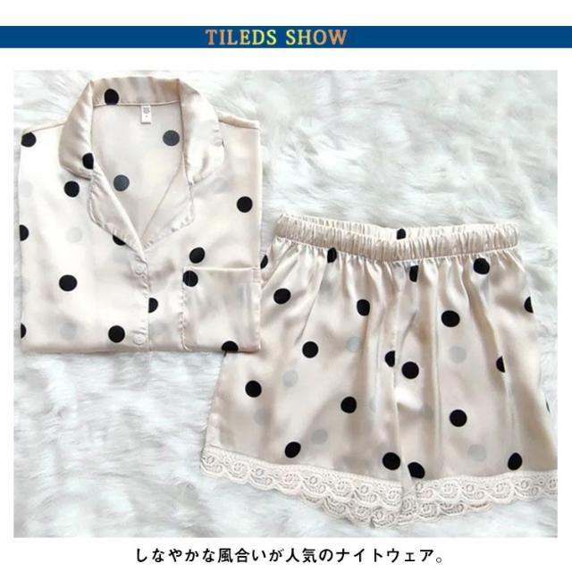 トップス レディース 部屋着 ハーフパンツ セットアップ 半袖 ドット柄 寝巻き 夏 サテン調 ハーフパンツ ショートパンツ 寝間着 上下2点セット パジャマ 薄手 リボン リラックス 涼しい 夏 ルームウェア