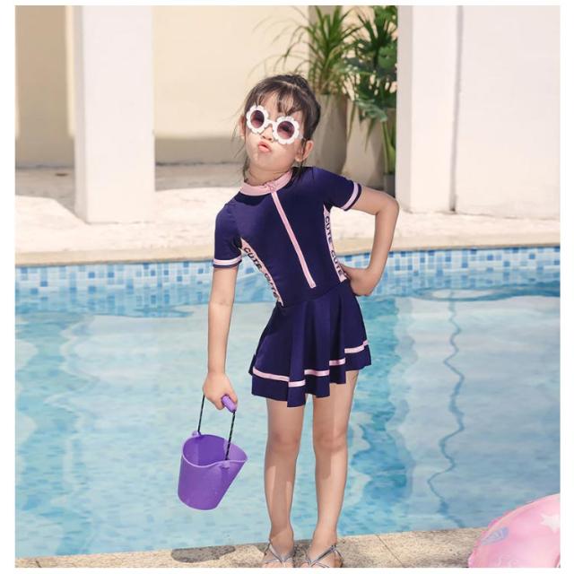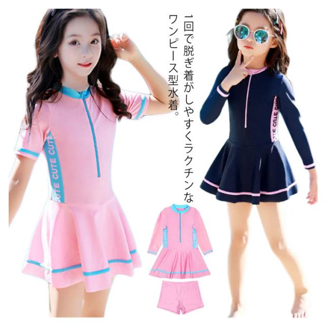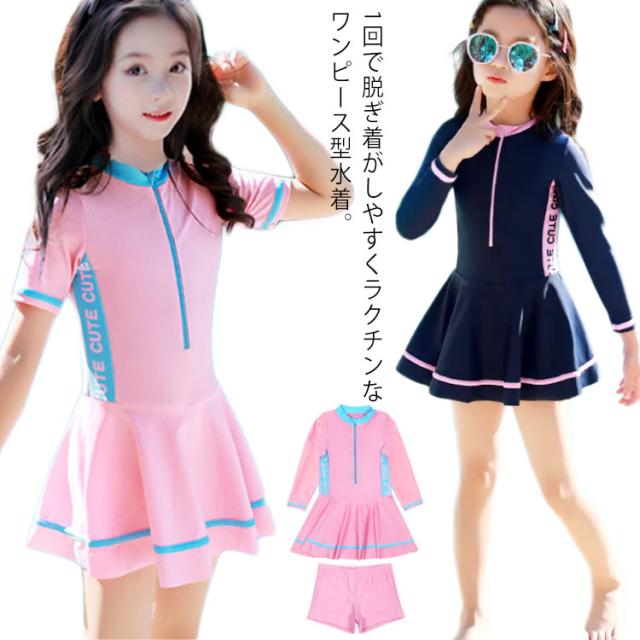長袖 送料無料 半袖 女の子 スイムウェア セット キッズ ショルダーバッグ ワンピース スクール水着 水着 紫外線対策 子供用 ジュニア 女児 小学生 可愛い 無地 水遊び 動きやすい