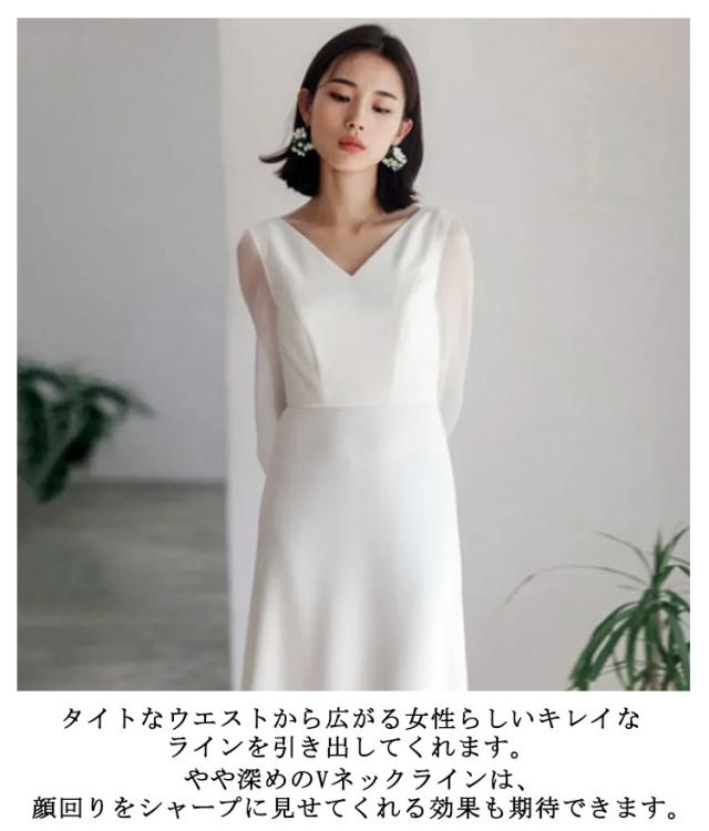 演奏会 Aライン ウェディングドレス 結婚式 二次会 後撮り Vネック 長袖 送料無料 花嫁 シースルー シンプル ウエディングドレス 前撮り シフォンスリーブ 披露宴 海外挙式ドレス 発表会 シアー